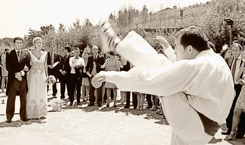 La boda de Esti y Pali del pasado mes de Julio fue una prueba de resistencia física. Bajo un sol inmisericorde, todos los allí presentes (novios, invitados, músicos, Erlantz y yo, todo el servicio del Azurmendi, etc) sudamos la gota gorda.
